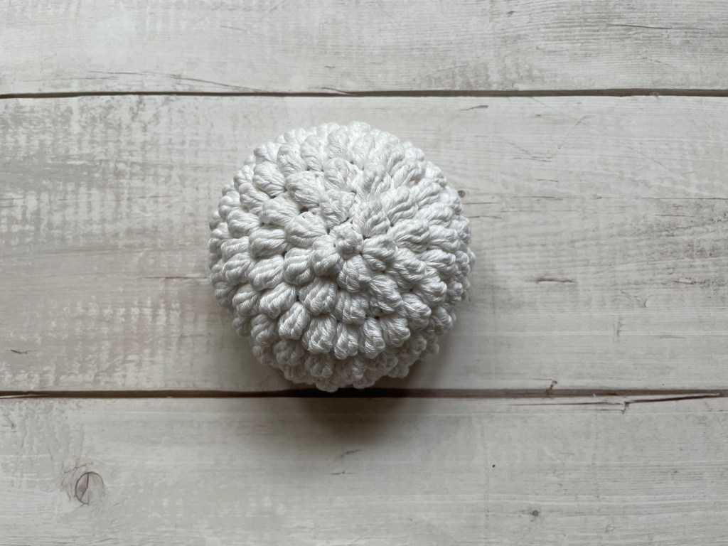 Fasten off and snip leaving a long tail for sewing onto the cauliflower.