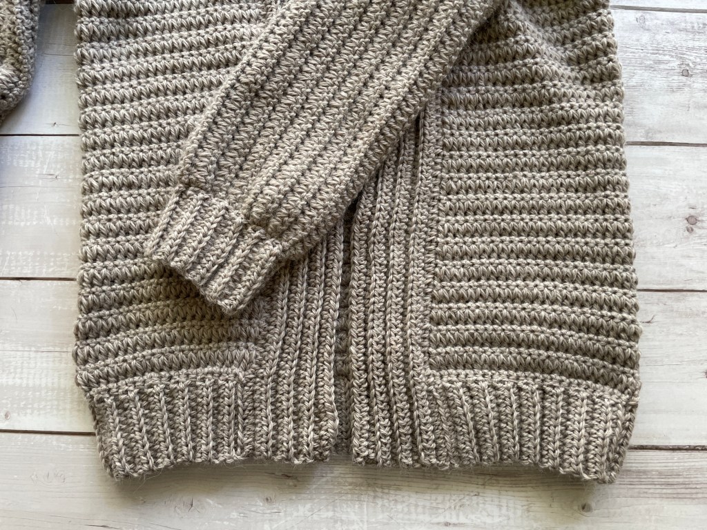 Your cardigan may have a bias to the fabric which is an expected side-effect of this beautiful stitch. This will be corrected with blocking. If you’ve never blocked a crochet garment before, watch my video tutorial here for everything you need to know!