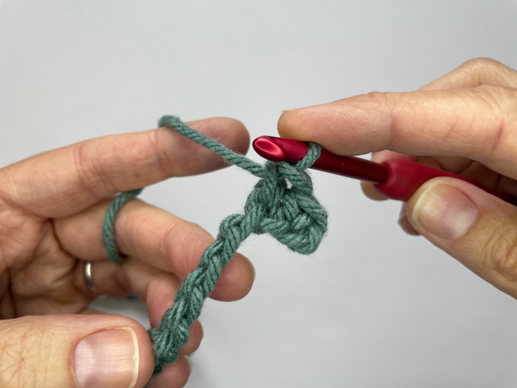 - After making your chain, insert your hook into the 2nd back bump from the hook: