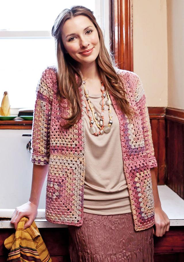This lightweight granny square cardigan is accented with tapered double crochet sleeves. The soft texture makes it comfortable for all-day wear.