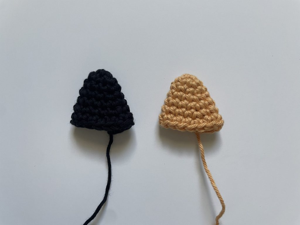 | Sl st to fasten off and snip leaving a tail to sew on. Flatten and pinch ears to curve them in a bit. | ||
