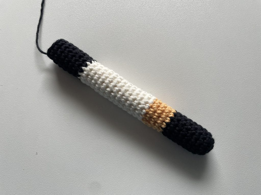 | Rnd 15: | sc around: B 12, O 9, W 25, B 2 | [48] |