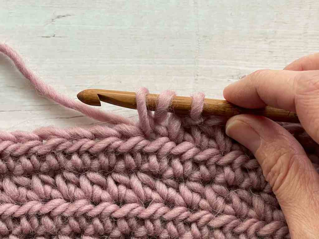 5. Pull through all 3 loops on the hook (you’re left with just your working loop left on the hook!)