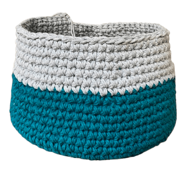 Size: The basket will end up being about 16-18″ wide and 13″ tall. If you want it taller or shorter, simply add or remove rows!
