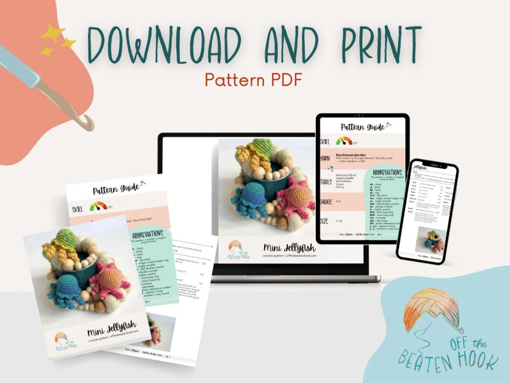 I can’t wait to see your adorable mini jellyfish crochet pattern! Be sure to tag me on social media @offthebeatenhook or use the hashtag #offthebeatenhook so I can admire your makes. ❤️
