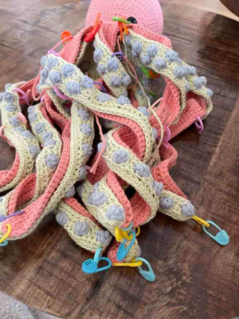 - Remember all the tips learned when crocheting the upper tentacles, as the base tentacles use the same method, with the additional of the bobble suction cups.