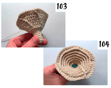 | Fasten off and weave in end. | PH 103 & 104 | ||